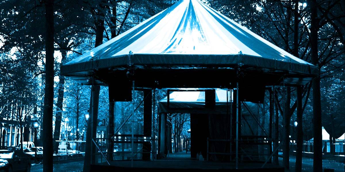 Deze unieke kiosk met deze flexibiliteit is nergens anders te vinden! Dankzij het formaat van ruim 6 x 6 m met afgeschuinde hoeken is de QiosQ zoals gezegd vrijwel overal plaatsbaar zoals in parken, op marktpleinen, op de hoek van de straat en zelfs binnen. De onderbouw kan naar wens uitgebreid worden met o.a. extra vloer, een ramp, een catwalk en trappen. Als afwerking is het mogelijk om VIP-hekken toe te passen, zijzeilen te bevestigen en het geheel af te werken met afrokdoek.