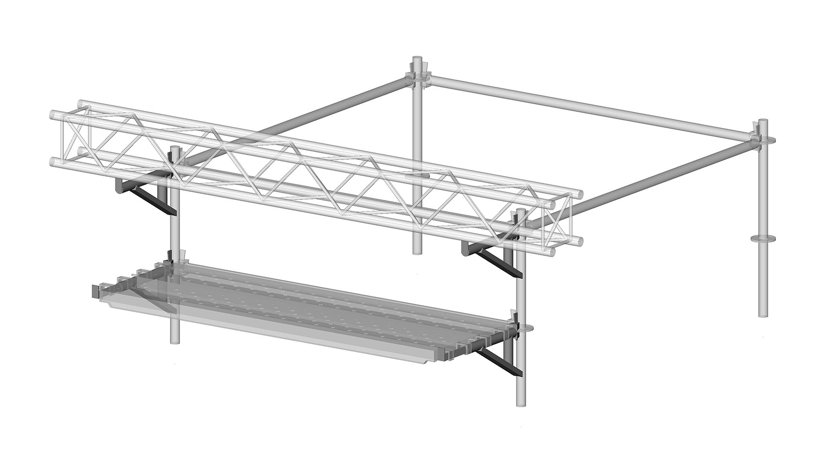 Aan het uiteinde kan deze console met 200 kg belast worden of over de breedte een verdeelde belasting dragen van 335 kg/m². Met een breedte van 40-60 cm kan deze console ruimte bieden aan 1 of 2 steeldecks, waardoor deze ideaal is voor het stacken van een LED-scherm of het plaatsen van een truss.