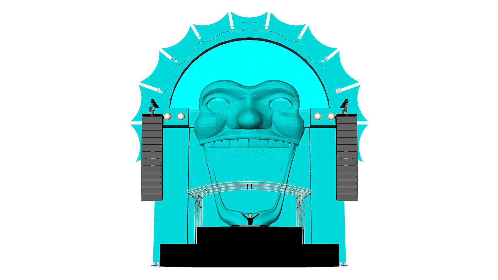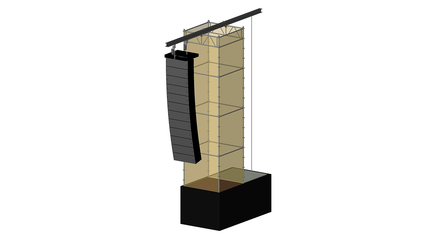 De uitstekende hijsbalk heeft een lengte van 4.3 m, 6 m of 8 m, kan tot 3 m vóór de Layher constructie uit steken en heeft een maximaal draagvermogen van maar liefst 3.000 kg! De uitstekende hijsbalk maakt het mogelijk line-arrays vóór een decorwand te hangen waardoor het moeten inbouwen van de line-arrays geen ontwerpbeperking meer is. Dit zorgt ook voor een optimale geluidsweergave omdat deze de speakers vrij in de ruimte hangen en niet achter decor of andere objecten.