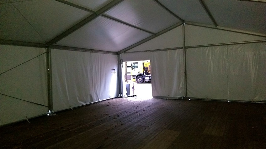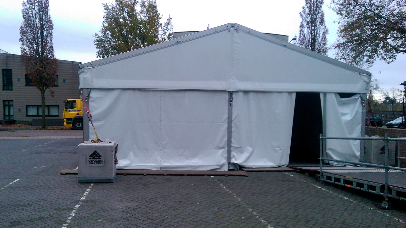 Deze Alu-constructietent is een goede tent voor een bruiloft of business event en prima inzetbaar als cateringtent. De tent is volledig uitgevoerd in witte verduisterde zeilen waardoor daglicht buiten blijft. Vanwege het witte uiterlijk geeft deze tent een volledige andere sfeer dan de gekleurde festivaltenten op uw evenement.