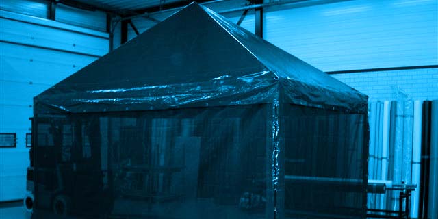 Deze tent is 3 m breed en 5 m lang en volledig in blauw uitgevoerd. De zijkanten van de tent zijn gedeeltelijk voorzien van gaasdoek, waardoor deze tent ideaal inzetbaar is als bijvoorbeeld keukentent. Dit omdat vanwege de gaas-zijkanten de warme dampen makkelijk weg kunnen. Daarnaast kunnen, door middel van de afzuiging die in de tent gemonteerd is, alle vervelende dampen weggenomen worden.