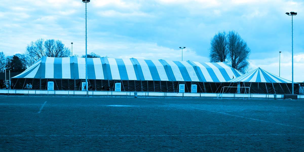 Deze festivaltent is eveneens een fijne en ruime tent voor pop- en rockconcerten, gildefeesten en tentfuiven van kleinere omvang. Ook deze tent heeft een mooi geel-blauw gestreept uiterlijk. Het is een prachtige traditionele festivaltent, waarbij het geel blauwe dak lichtdoorlatend is en een gezellige SFEER geeft op elk evenement.